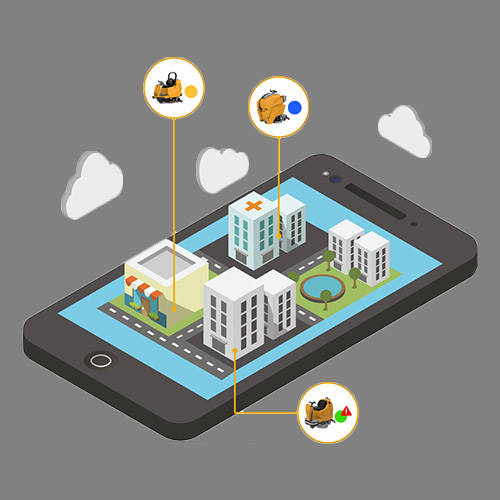 Die Kartenerstellung erfordert keinen spezialisierten Techniker und garantiert somit eine schnelle Einrichtung. Die "Teaching"-Phase des Bedieners ist einfach und unkompliziert. Anschließend kartiert R-Quartz das Arbeitsumfeld vollkommen sicher und eigenständig. Das Bedienfeld, ausgestattet mit einem 7-Zoll-Touchscreen, ermöglicht eine einfache und direkte Kommunikation zwischen der Maschine und dem Bediener. Alle Funktionen, ob im „Bediener-“ oder „Autonomer“ Modus, können über eine intuitive Benutzeroberfläche und Symbole leicht konfiguriert werden, die einen schnellen Zugang zu allen Arbeitsphasen mit R-Quartz bieten.