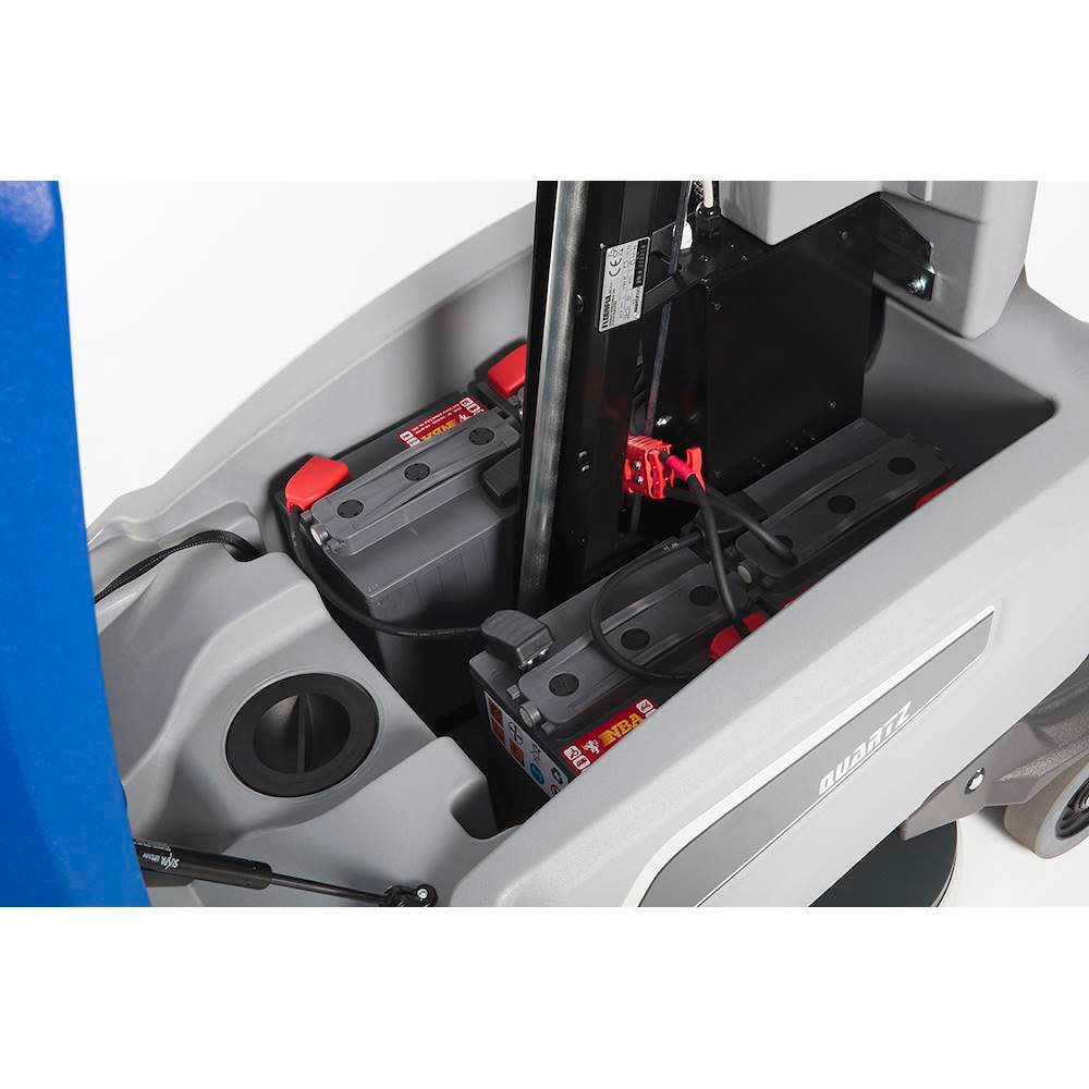 Con la nueva fregadora de suelos Quartz, Adiatek propone una solución compacta y ágil para limpiar suelos de ambientes medianos/grandes, gracias a una capacidad de trabajo de 4710m2/h. Esta nueva versión de máquina con hombre a bordo alimentada por baterías, que asocia al confort y a las prestaciones un gran manejabilidad, asegura una óptima limpieza del suelo con dos cepillos alimentados por dos motores de 350W. La fregadora secadora está provista de un robusto depósito de solución de 100 litros. El caudal de la solución detergente se puede regular directamente desde el panel de mandos, pasando de un flujo alto a un flujo bajo sin tener que interrumpir la limpieza.