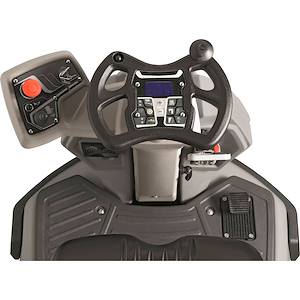 hace de la ergonomia un punto de fuerza y gracias a una silla un volante y una plataforma regulables, el operador puede elegir la posición de manejo.