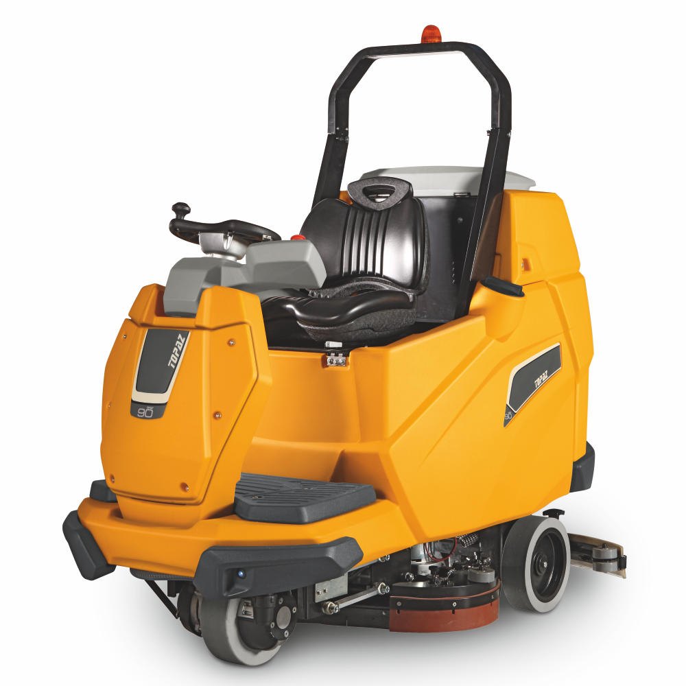 Versione con gruppo lavante dotata di due spazzole a disco controrotanti con larghezza di lavoro di 90 cm e motoruota in AC.